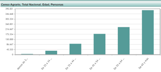 - Edad: el futuro del sector en riesgo. La edad de los titulares de las explotaciones es de 61,4 años de media. Un 70% del total estará en edad de jubilación de aquí a diez años.