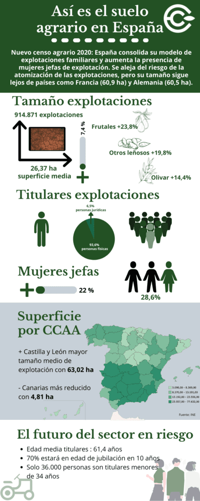 - Superficie de las explotaciones en España: 26,37 hectáreas (un 7,4% más)